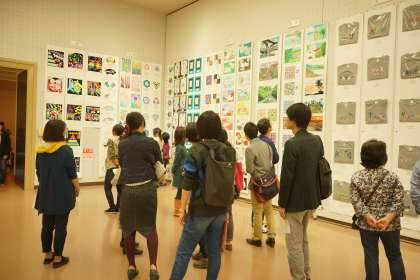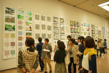 この日は総合文化祭美術展が開かれており、参加者の皆さんと各ブロックの作品を鑑賞しました。そして各自の出品している作品の「指導のねらい」「授業の様子」の紹介や「次に向けての改善点・改良点」などについて意見を交換しました。授業で生まれたやりとり、鑑賞やグループワークなど展開の工夫、指導のねらいや工夫など、作品だけではわからない部分を聞けて大変勉強になる、有意義な時間となりました。