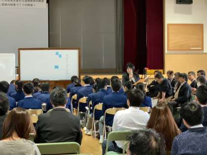 加納先生(市岡中)が3年3組で「監督がくれたメダル」を題材に公開授業を行いました。
