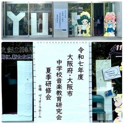 この夏季研修は、大阪府中音研とが近音研大阪大会をきっかけに、合同夏季研修会の開催を持っています。大阪府と大阪市の音楽科が共に学びあう研修会です。同時に大阪にある唯一無二の夕陽丘高等学校には例年会場を提供していただいております。大阪市・府の中学校を卒業した中学生も入学し、我が国の音楽界並びに音楽教育界を支える生徒をたくさん輩出しておられます。紙面をお借りしてお礼を申しあげます。