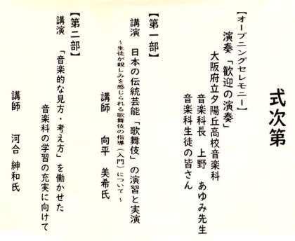 シリーズで行っていただいている我が国の伝統音楽の講座と文部科学省音楽科調査官 河合紳和先生の講演も6年目を迎え、学習指導要領のリアルで分かりやすい講演は、大阪府・市中学校の音楽科教員のスキルアップの機会を持て、とても有難いです。