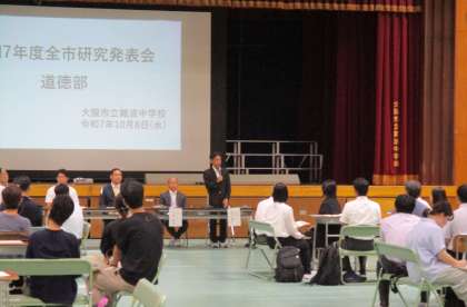 今年度は難波中学校を会場として公開授業・研究協議会(兼文部科学省「よりよい生き方を実践する力を育む道徳教育推進事業道徳教育研究校」公開授業・研究協議会)を開催しました。
