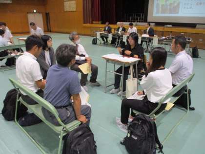 公開授業は2年3組で難波中学校玉守康成先生による「名乗り出なかった友」を教材として実施しました。その後、体育館での研究協議会は新北島中学校岡田芳和先生による公開授業の内容に沿った授業展開研修および参加された先生方が班に分かれてグループワークをとおして意見交流行いました。最後に総合教育センター指導主事田邉宜雅様より指導講評をいただきました。